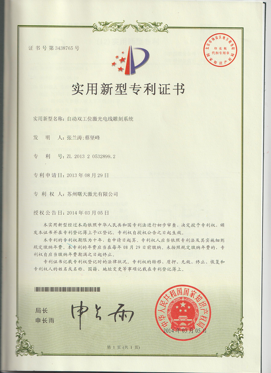 自動(dòng)雙工位激光電線雕刻系統(tǒng)專利